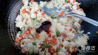 2. 炒米饭:在同一个锅中,加入适量的油,放入蔬菜和肉类,翻炒至蔬菜变软,肉类变色。倒入隔夜的米饭,用铲子将米饭压散,翻炒均匀。